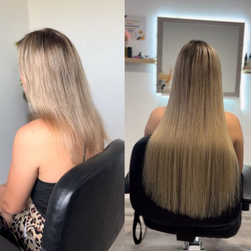 Procedura de aplicare a extensiilor presupune atașarea firelor sau șuvițelor suplimentare la părul natural, pentru a obține lungime, volum și un aspect uniform, fără a afecta firul de păr.