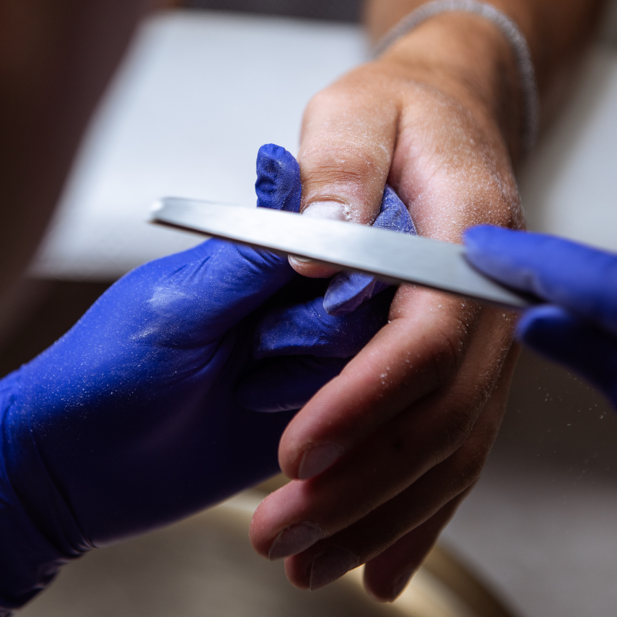 Procedura include: îndepărtat material vechi (dacă e cazul), stilizare cuticulă, curățare unghii, dat formă.