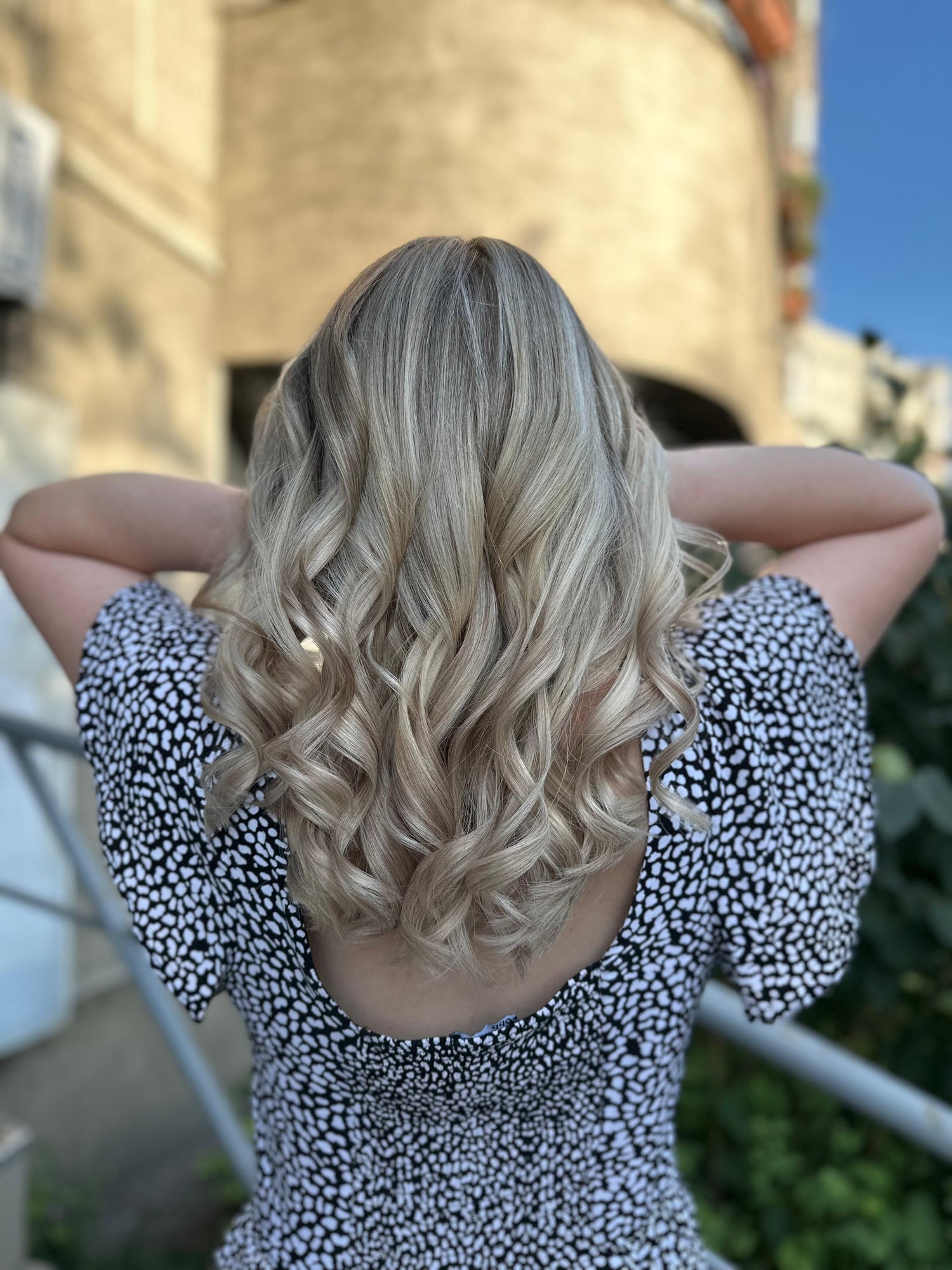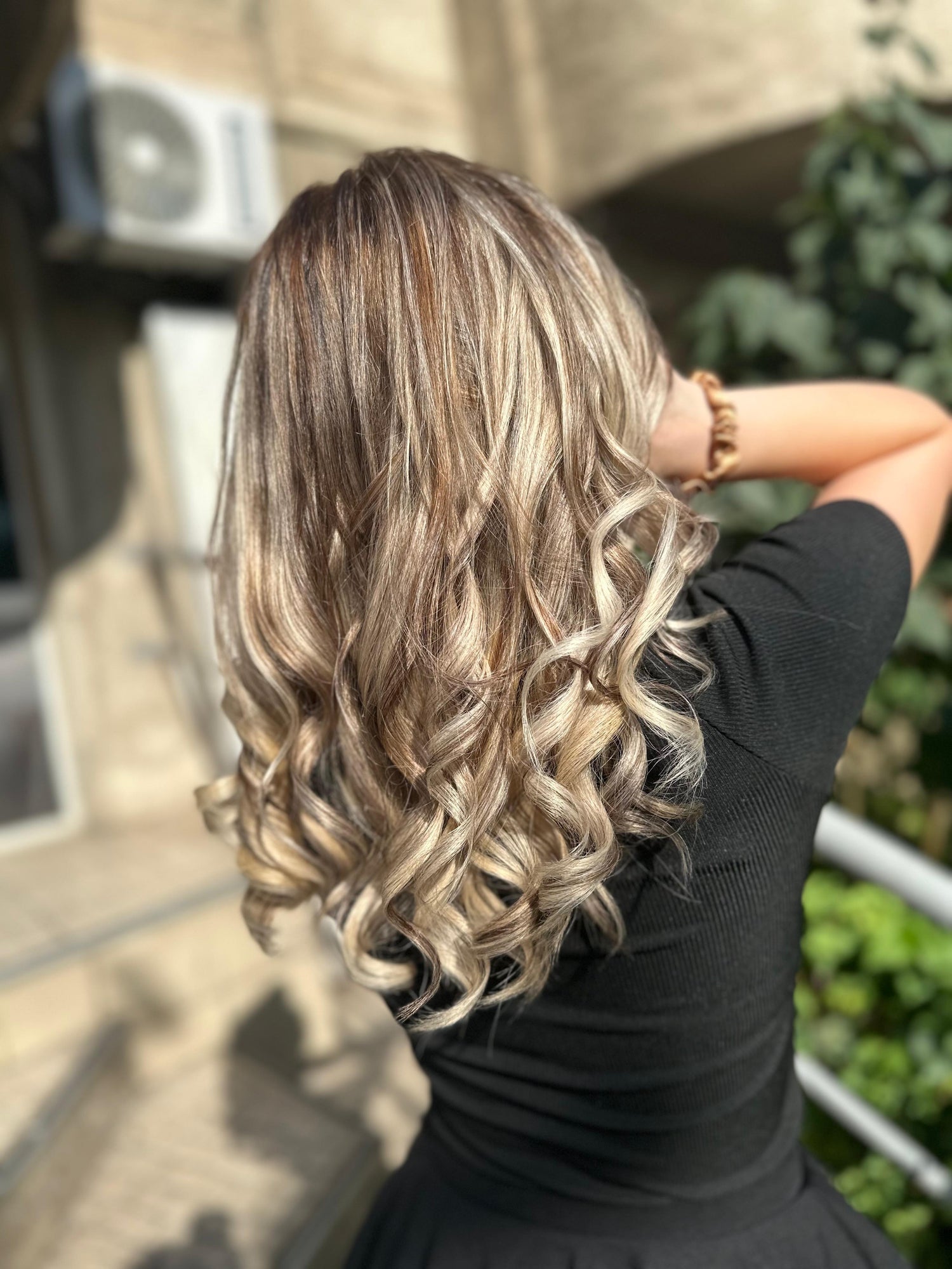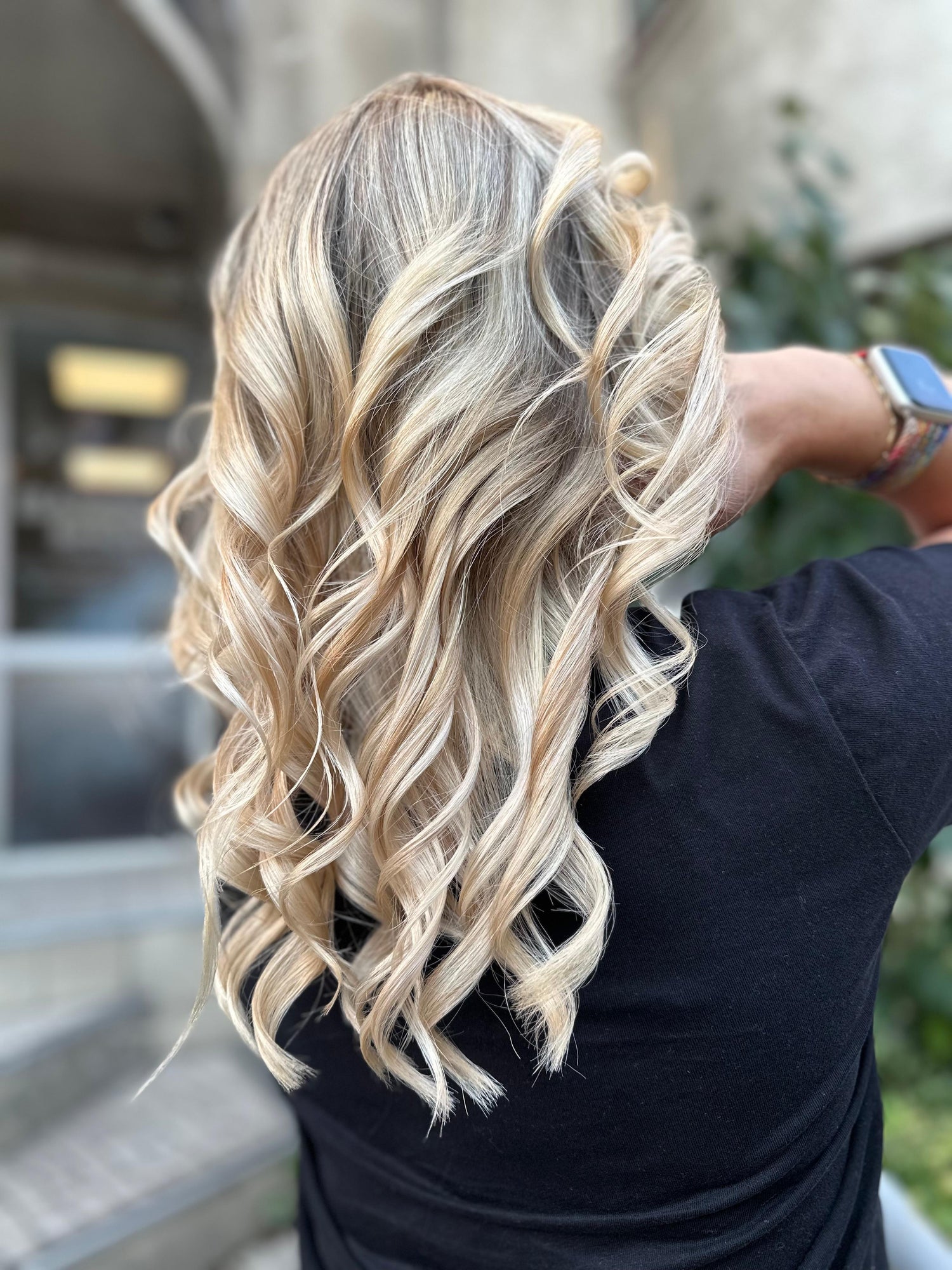 • Spălat + stylingIdeal pentru întreținerea balayage-ului sau a blondului între două decolorări!