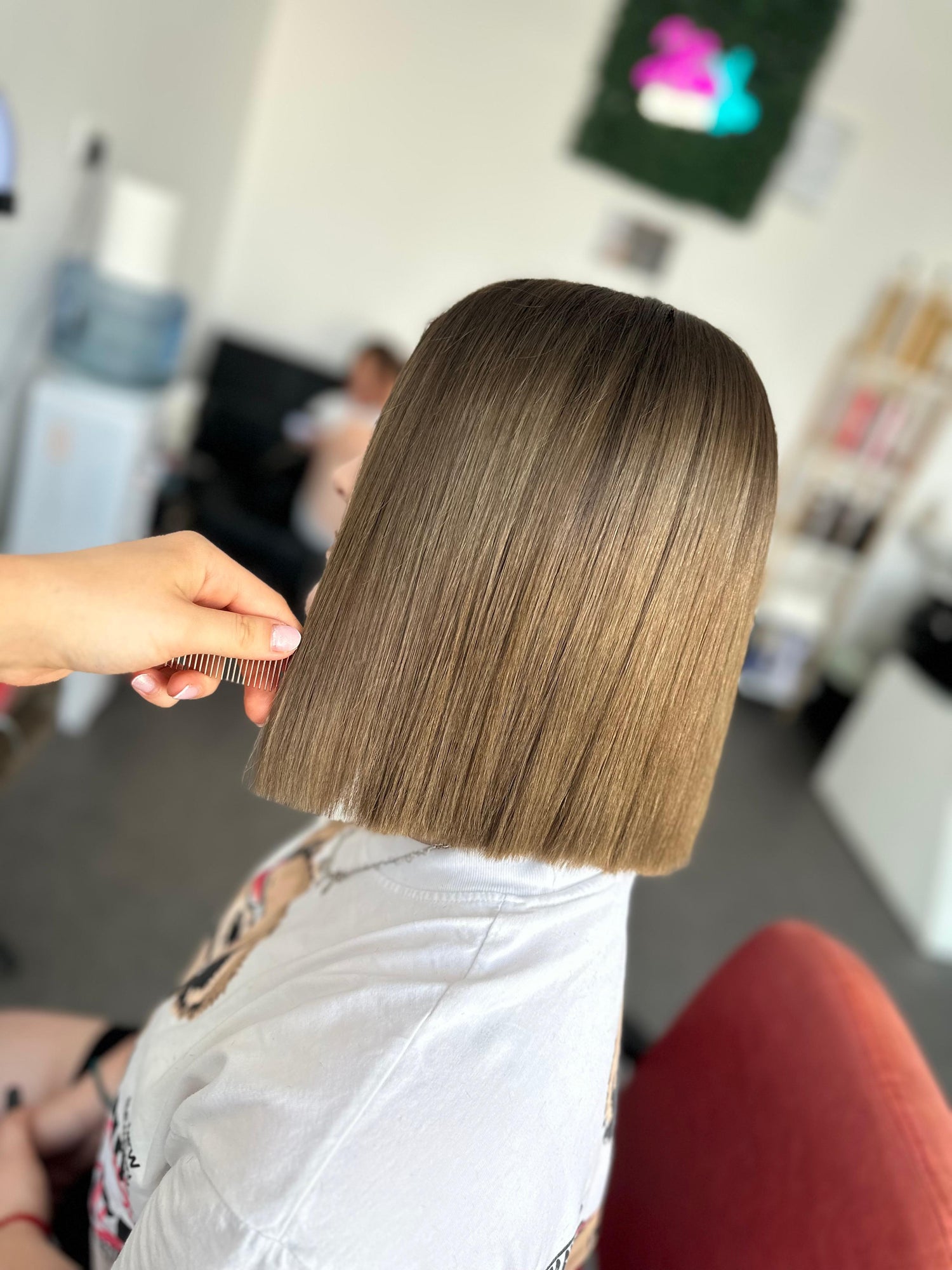 Tratamentul de îndreptare cu keratină este o procedură avansată care ajută la redarea unui păr neted, strălucitor și ușor de coafat, prin aplicarea unui produs pe bază de keratină, care penetrează fibra capilară și o reconstruiește din interior.